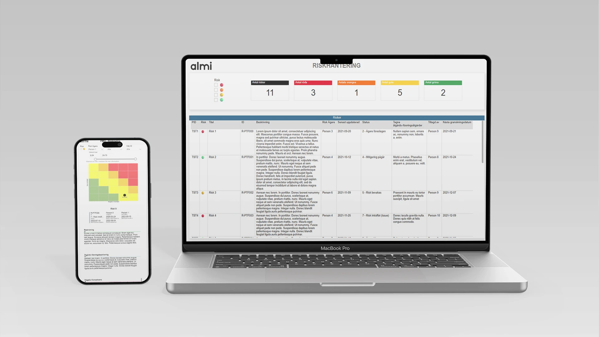 Inom projektledning är det vanligt att arbeta med riskmatriser i Excel, där sannolikhet och påverkan plottas mot varandra. Men för Almi, som hanterade många projekt parallellt, blev det svårt att få en tydlig och uppdaterad helhetsbild.