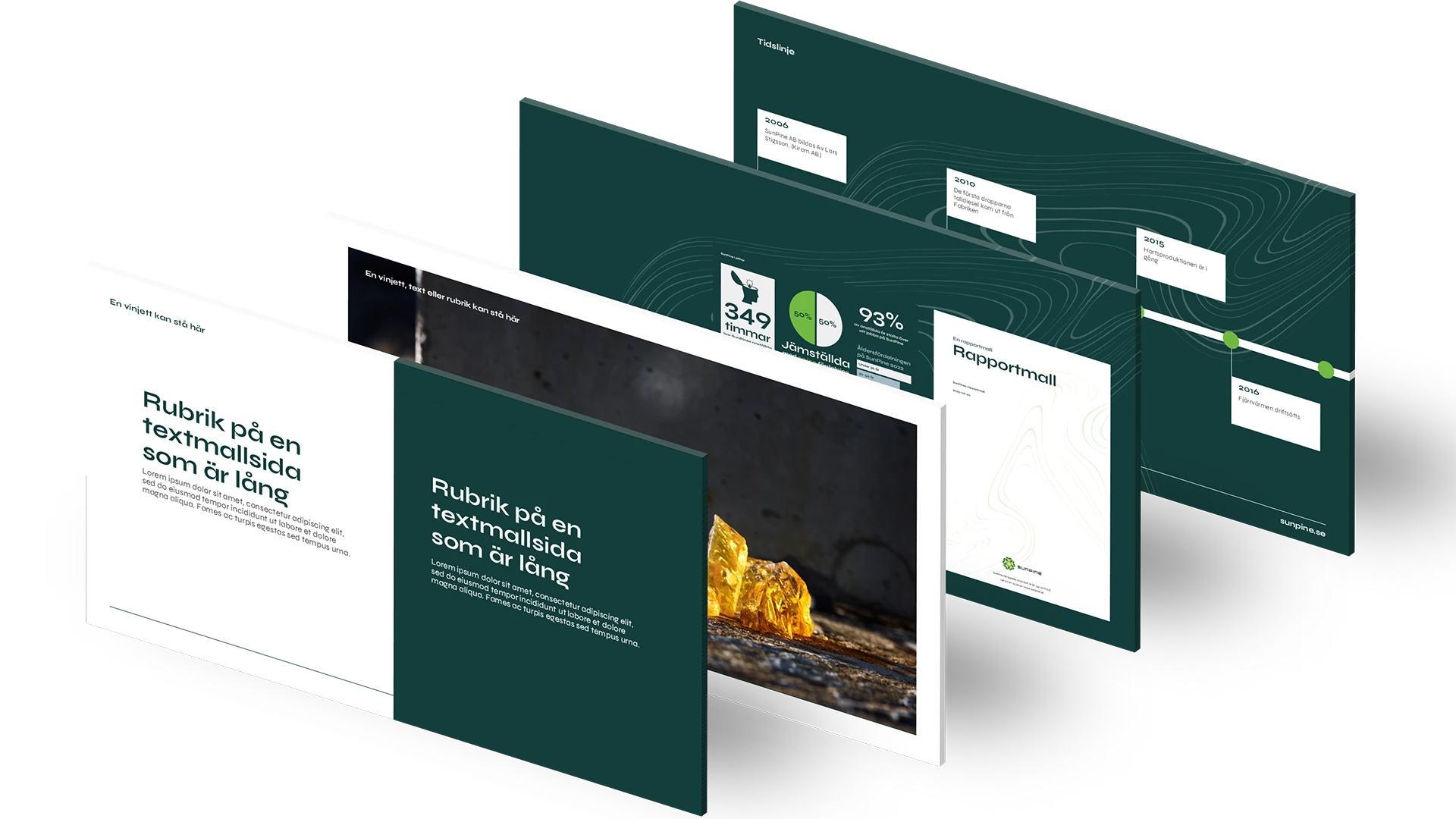 Vi säkerställer att du får en skräddarsydd och funktionell mall som både speglar ditt varumärke och effektiviserar ditt arbete. Vi skapar färgtema, teckensnittstema och producerar layouts och målet är alltid att mallen ska vara flexibel och lätt att använda.