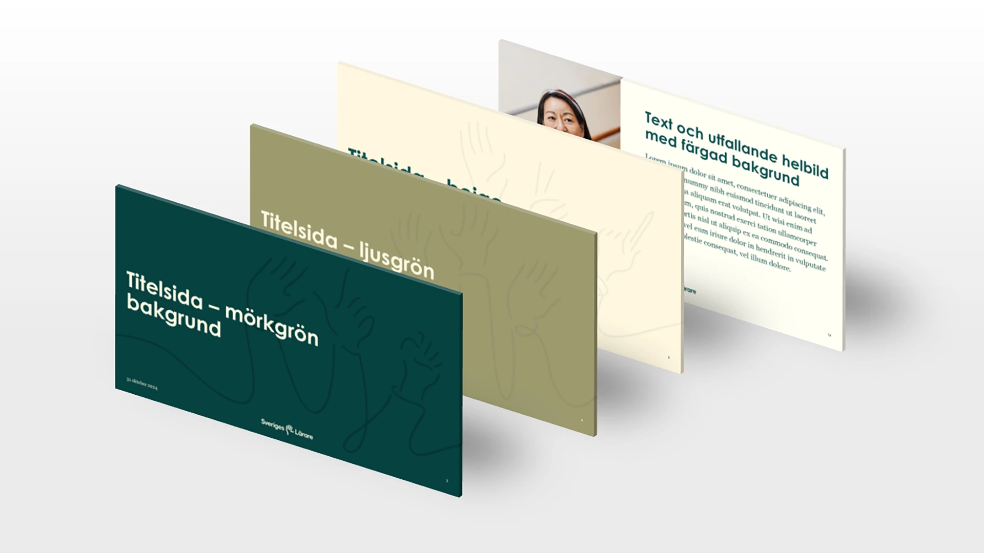Våra PowerPoint-mallar gör det enkelt för hela organisationen att hålla en enhetlig, proffsig och visuellt stark linje. Allt är förinställt: färger, typsnitt, logga och er unika design – så att varumärket sitter, oavsett vem som bygger presentationen.